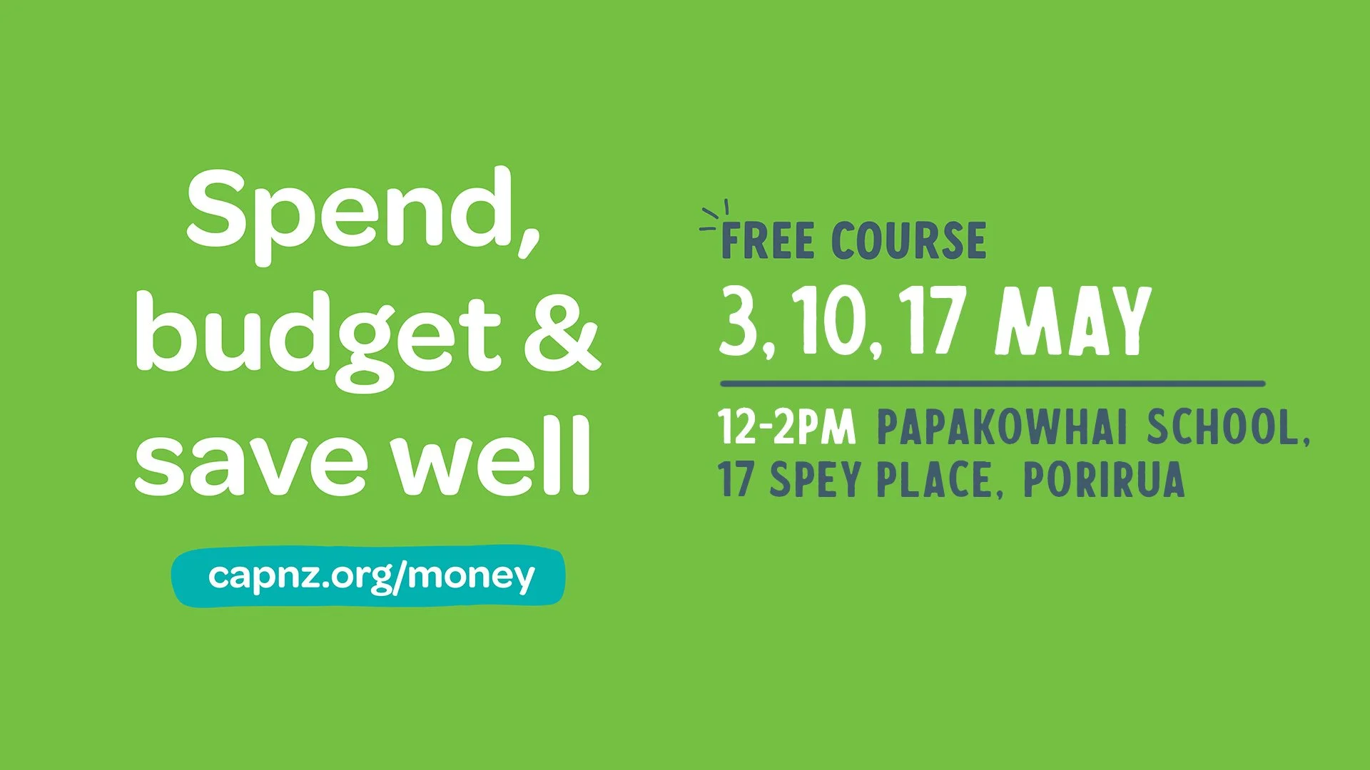 The course will run for 3 weeks, on Sunday 3rd, 10th and 17th May. It will be at Papakowhai School (17 Spey Place, Porirua) from 12-2 pm.