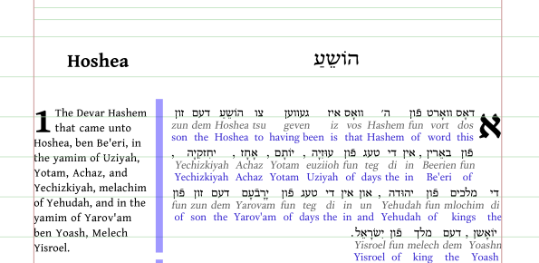 Wisdom and attention to detail - I need to be focused and rest my eyes regularly - helping typeset the Yiddish Old Testament translation as shown below which is a draft / work-in- progress of the book of Hosea. Pray for the translator who actively shares with ultra-orthodox Jews.